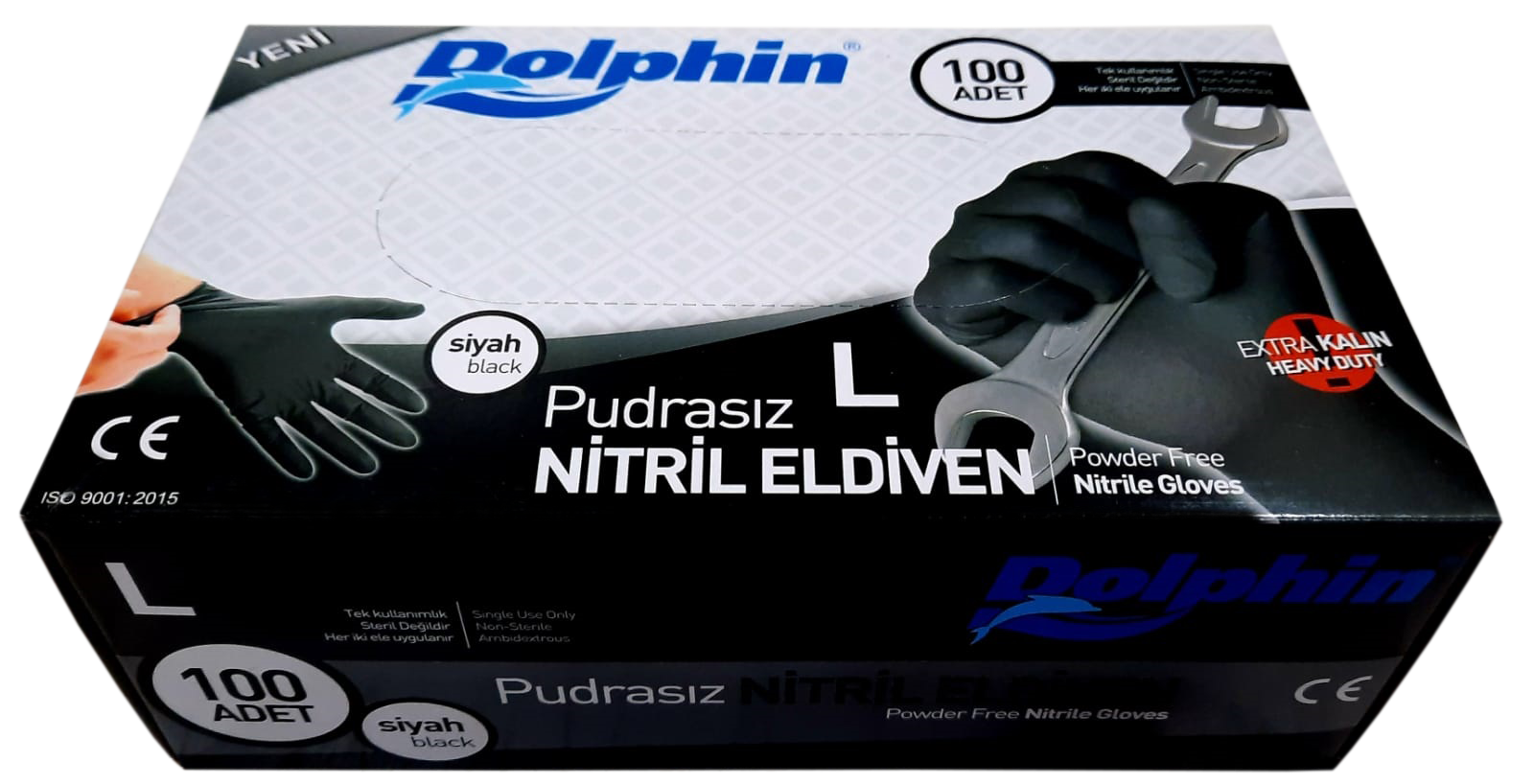 Dolphin Nitril Extra Kalın Siyah Eldiven L 100'lü