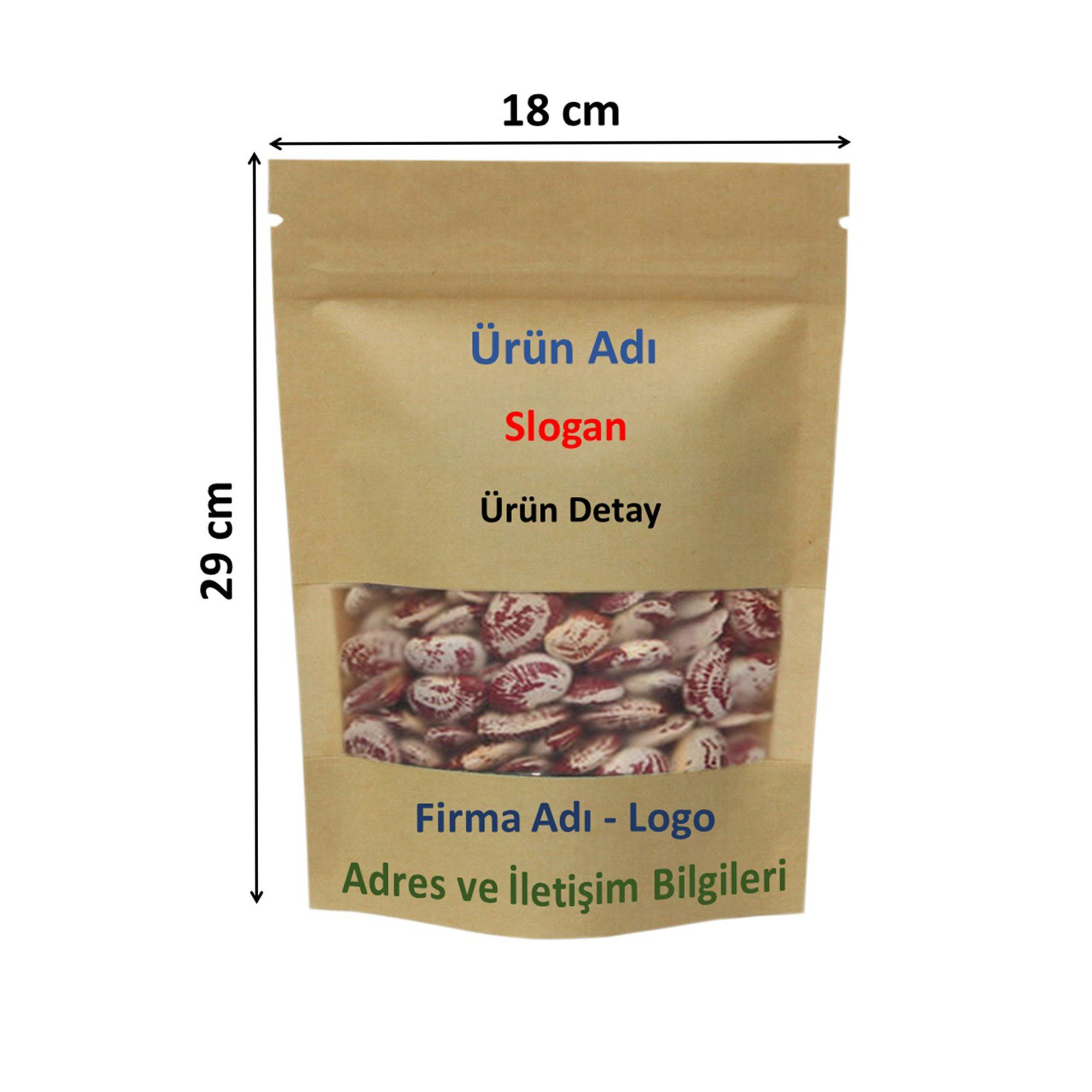 Firma Baskılı Kraft Dar Pencereli Kilitli Doypack 18x29x9 cm